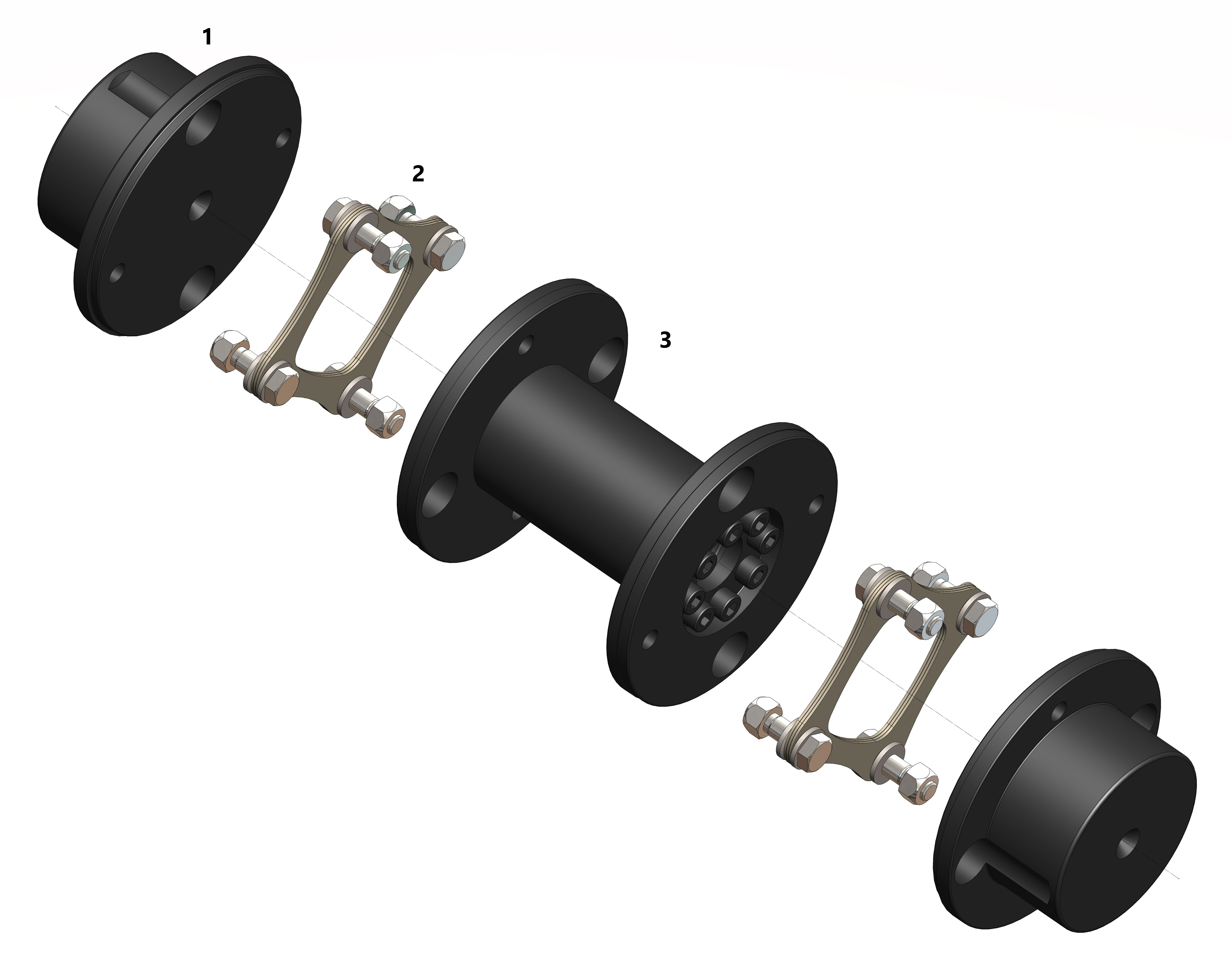 Disc couplings are of an all-metal, non-lubricated design and are torsionally stiff. The torque is transmitted by means of discs, which are alternatively mounted (on the same bolt circle) to the drive and driven flange of the disc pack assembly.